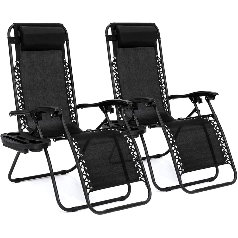 FINE GARDEN 2pk Heavy Duty Zero Gravity Chairs | Garden Outdoor Sun Loungers Folding Reclining Chairs With Heavy Duty Double Cup Tray -Black