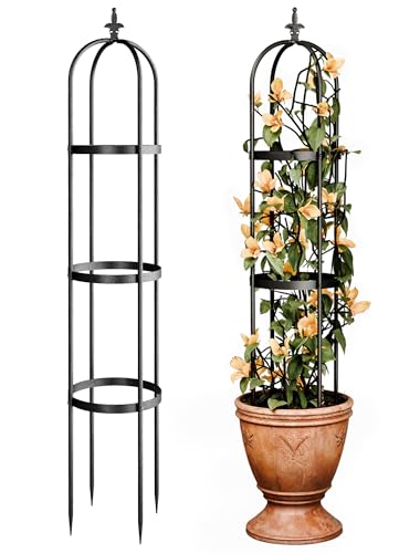 Garden Obelisk Trellis for Climbing Plants Outdoor 6 Ft Rose Bush Round Trellis for Pots Rustproof Metal Plant Flower Trellises for Clematis Vine Jasmine Support Outdoor Indoor
