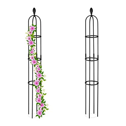 Relaxdays Garden Obelisk, Set of 2, 190 x 35 cm, Support for Climbing Plants, Free-Standing, Metal, Rose Cage, Black, Steel