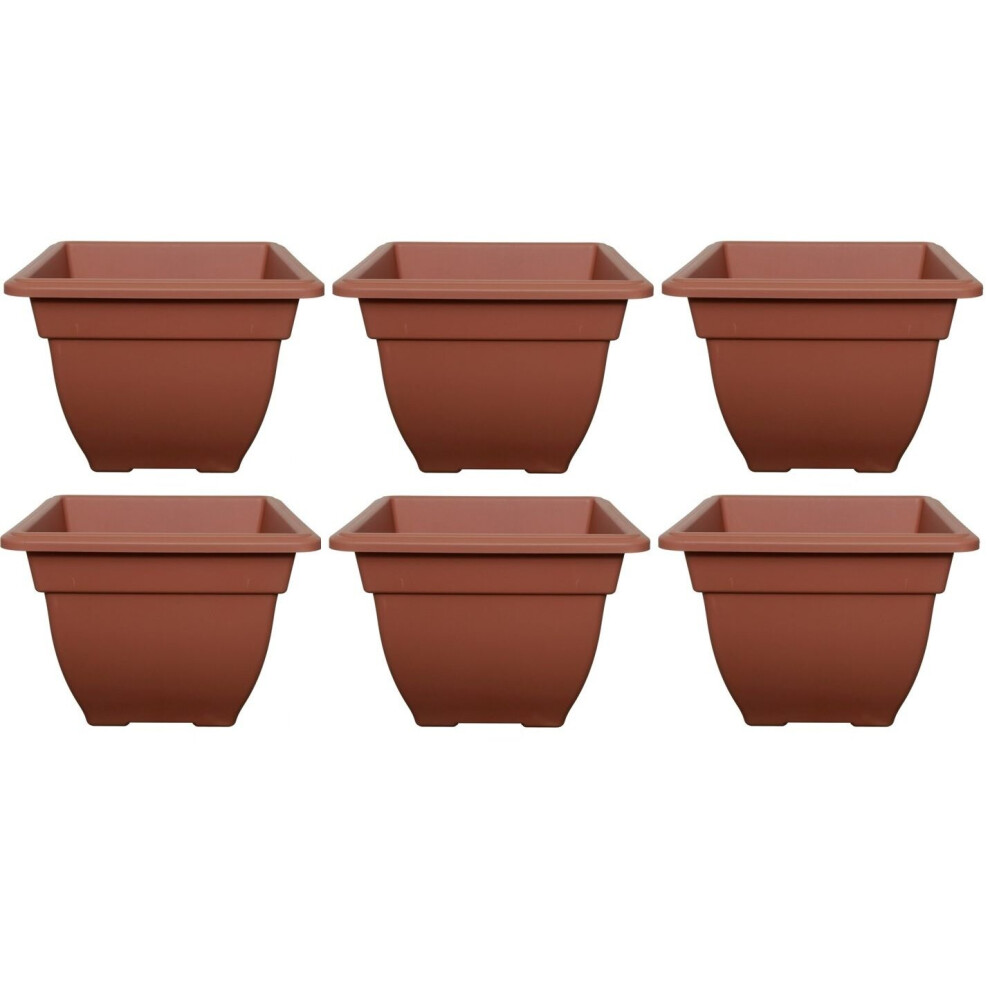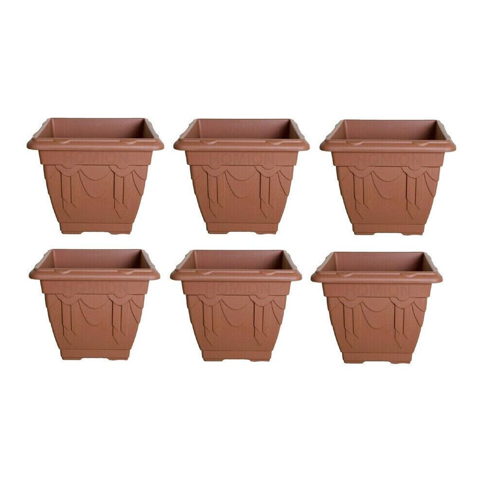 (22 cm set of 6) Terracotta Square Venetian Plastic Flower Pots Garden Plants Container Growing