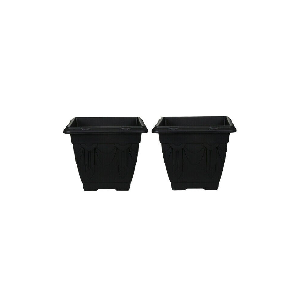 (38 cm set of 2) Black Square Plastic Venetian Flower Pot Pots Garden Plants Container Growing