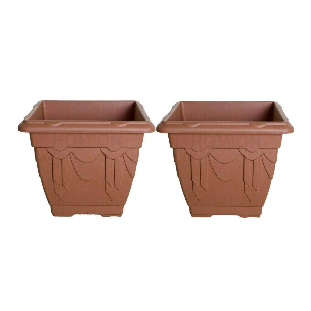 (38 cm set of 2) Terracotta Square Venetian Plastic Flower Pots Garden Plants Container Growing
