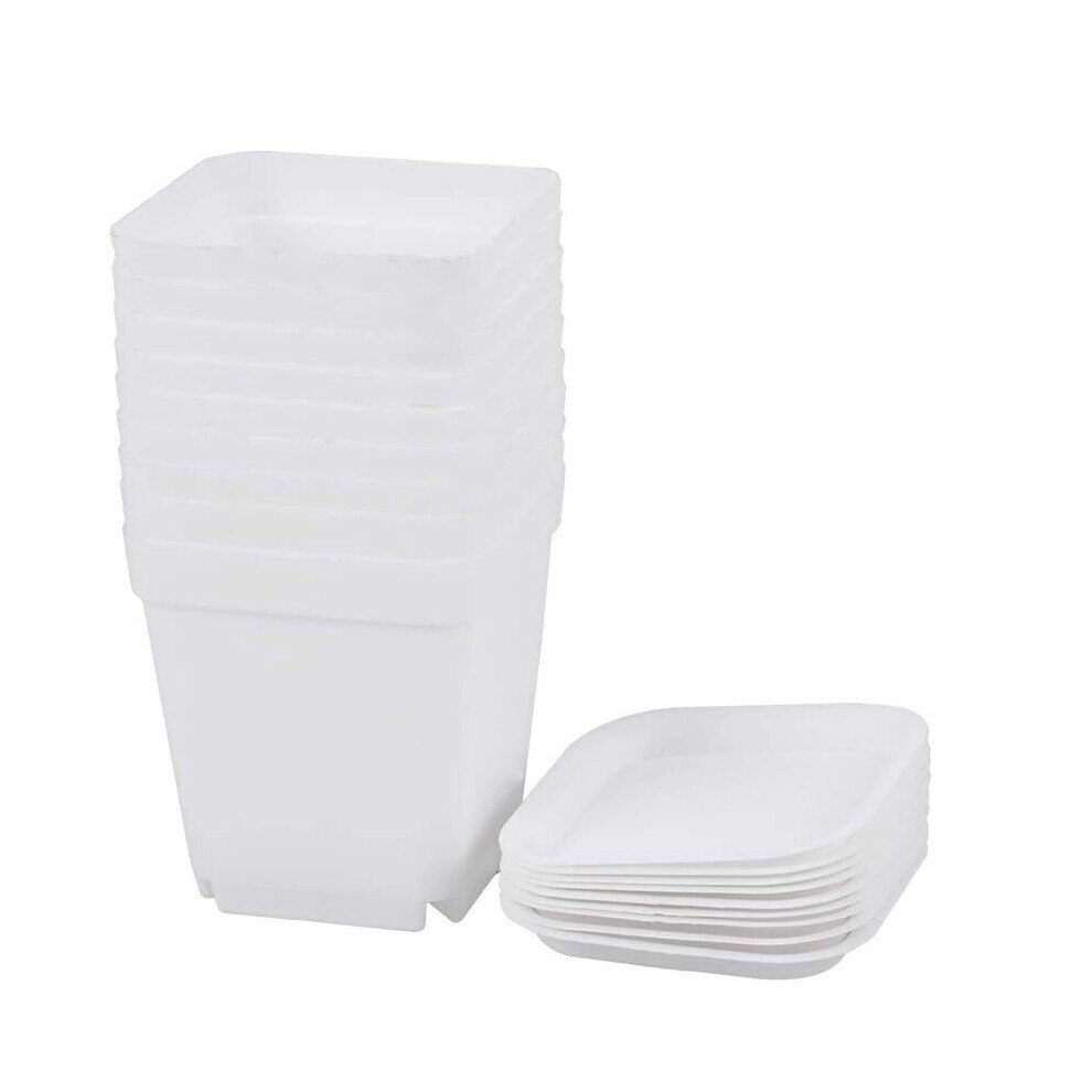 100 Pack 2.7Inch White Square Plastic Plant Pots with Saucer,Seedling Nursery Transplanting Planter Container for Garden