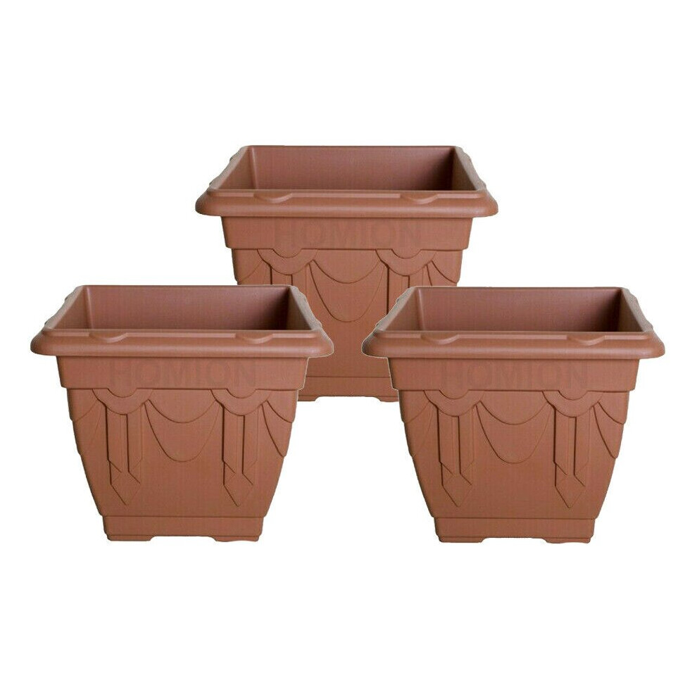 (38 cm set of 3) Terracotta Square Venetian Plastic Flower Pots Garden Plants Container Growing