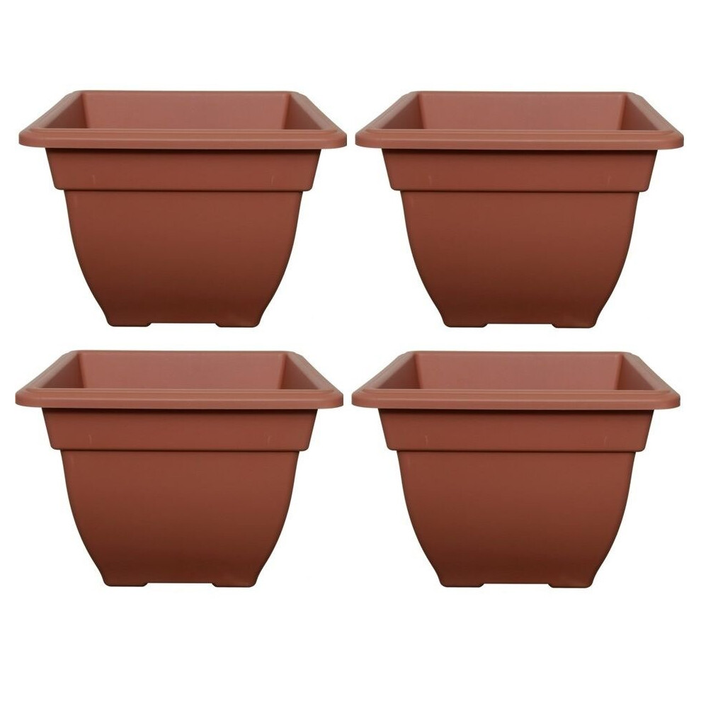 4 x 38cm Square Bell Planters Plastic Terracota Colour Garden Pots
