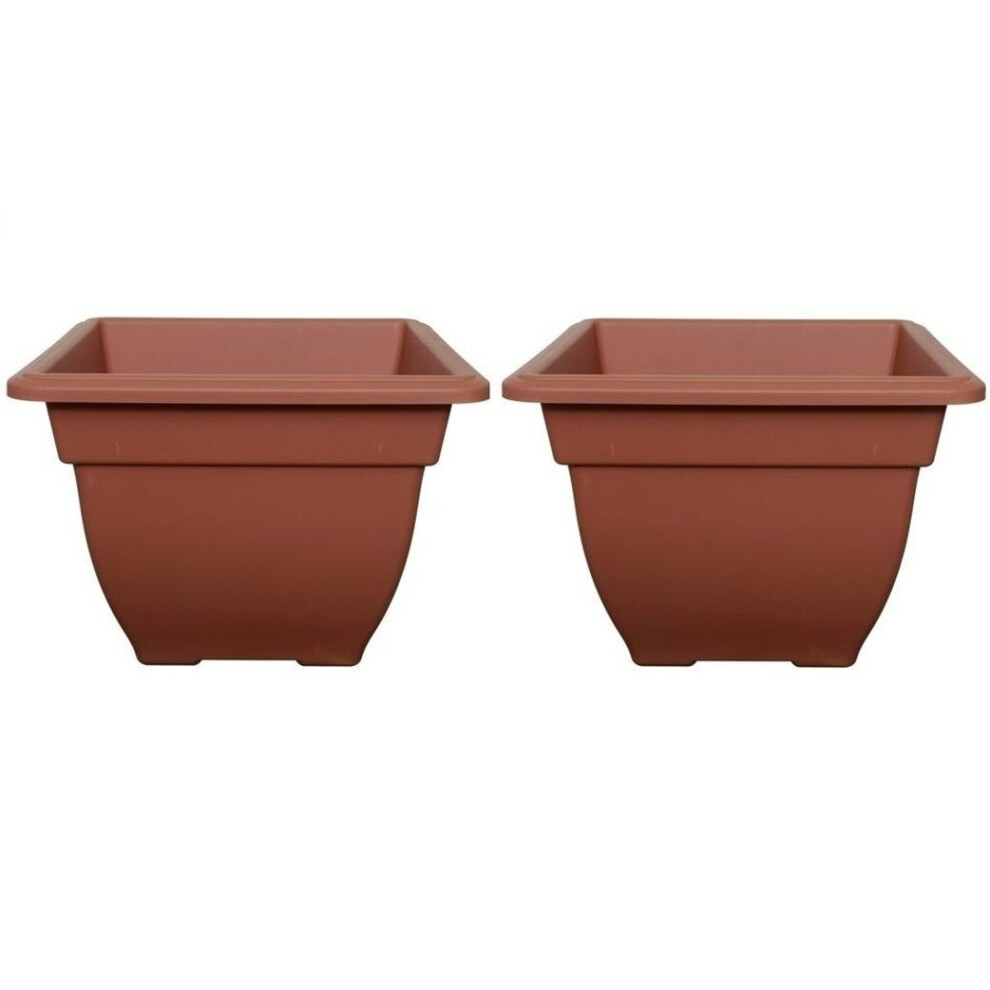 2 x 38cm Square Bell Planters Plastic Terracota Colour Garden Pots