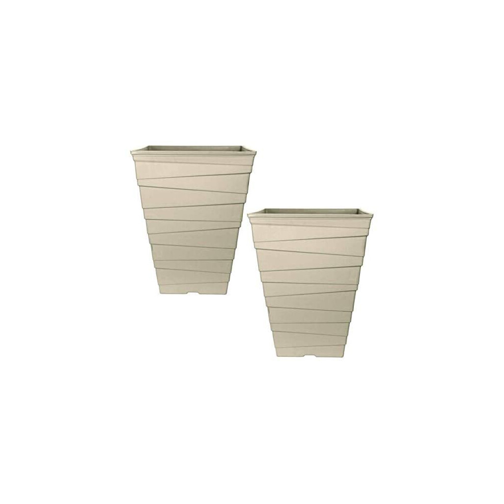 (2X Cream, Small Square) Coubi Plastic Flower Plant Garden Indoor Outdoor Herb Planter Pots Modern Colour