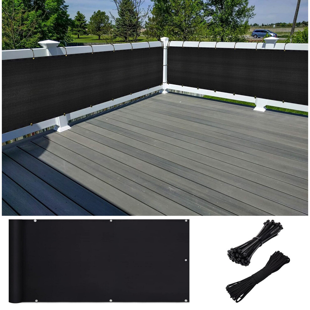 Gr8 Garden Black Patio Privacy Screen Netting Fence Balcony Sun Shade Windbreak Waterproof Screening UV Protection Panel Cover (0.75 x 6m)