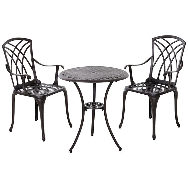 Outsunny Aluminium Bistro Set Garden Coffee Table Chair Outdoor Dining Black