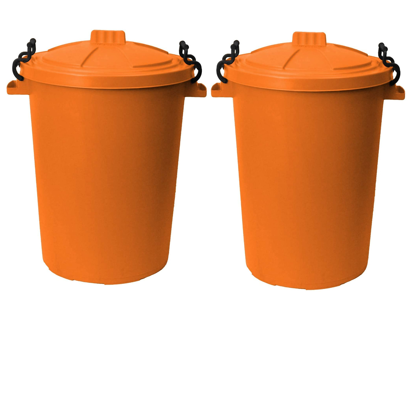 [Set of 2] 50L Orange Plastic Dustbin Clip Lock Lid Waste Rubbish Garden Bins