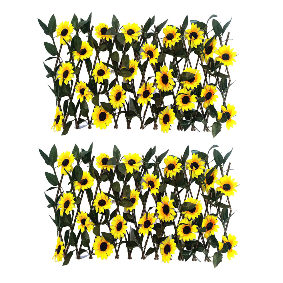 Expanding Garden Trellis Panels 150*30cm, Trellis with Artificial Leaves, Expandable Gardens Fence Screening with Sunflower, Artificial Trellis