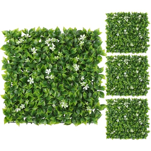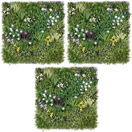 LUWENER 4PCS Artificial Plant Living Wall Panels,1m x 1m Grass Plant Wall Panel Greenery Privacy Living Wall Fence Screening Home Garden Backdrop for Indoor Outdoor Home(50 * 50cm with flower)