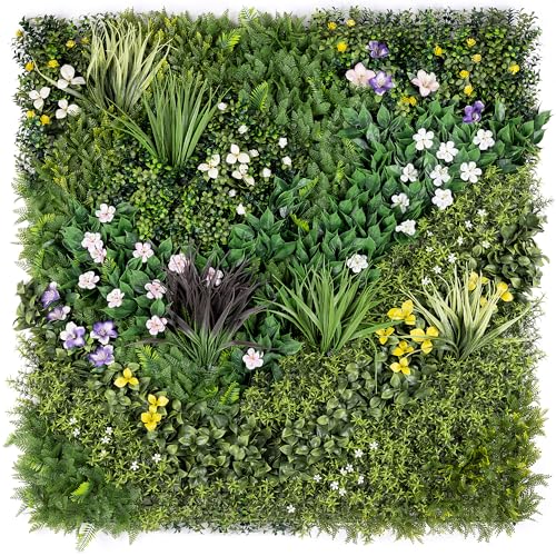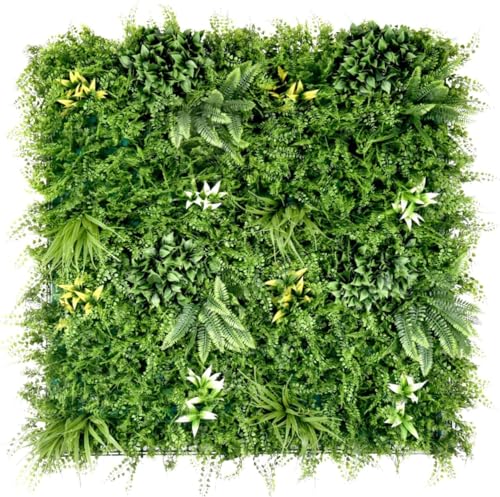 Artificial Living Wall Panels, Spring Bloom Green Plant Flower Foliage, Indoor Outdoor, Home Garden Decoration, Privacy Hedge Fence Screening, UV Stabilised, Waterproof, Natural Look (100cm x 100cm)