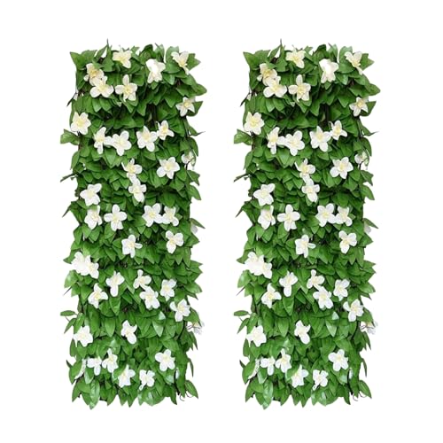 Expanding Gardens Trellis Panels 200x40cm, Artificial Ivy Fence Screening with White Orchid, Garden Privacy Hedge Screen for Garden, Balcony, Outdoor, Gardens Fences Screeningss (2PCS)