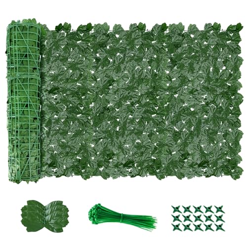 Artificial Ivy Fence Screening 3x1m, Expandable Ivy Trellis Screening Roll Fake Trellis for Balcony Garden Grass Wall Panels Outdoor Indoor Home Decor, Dark Green