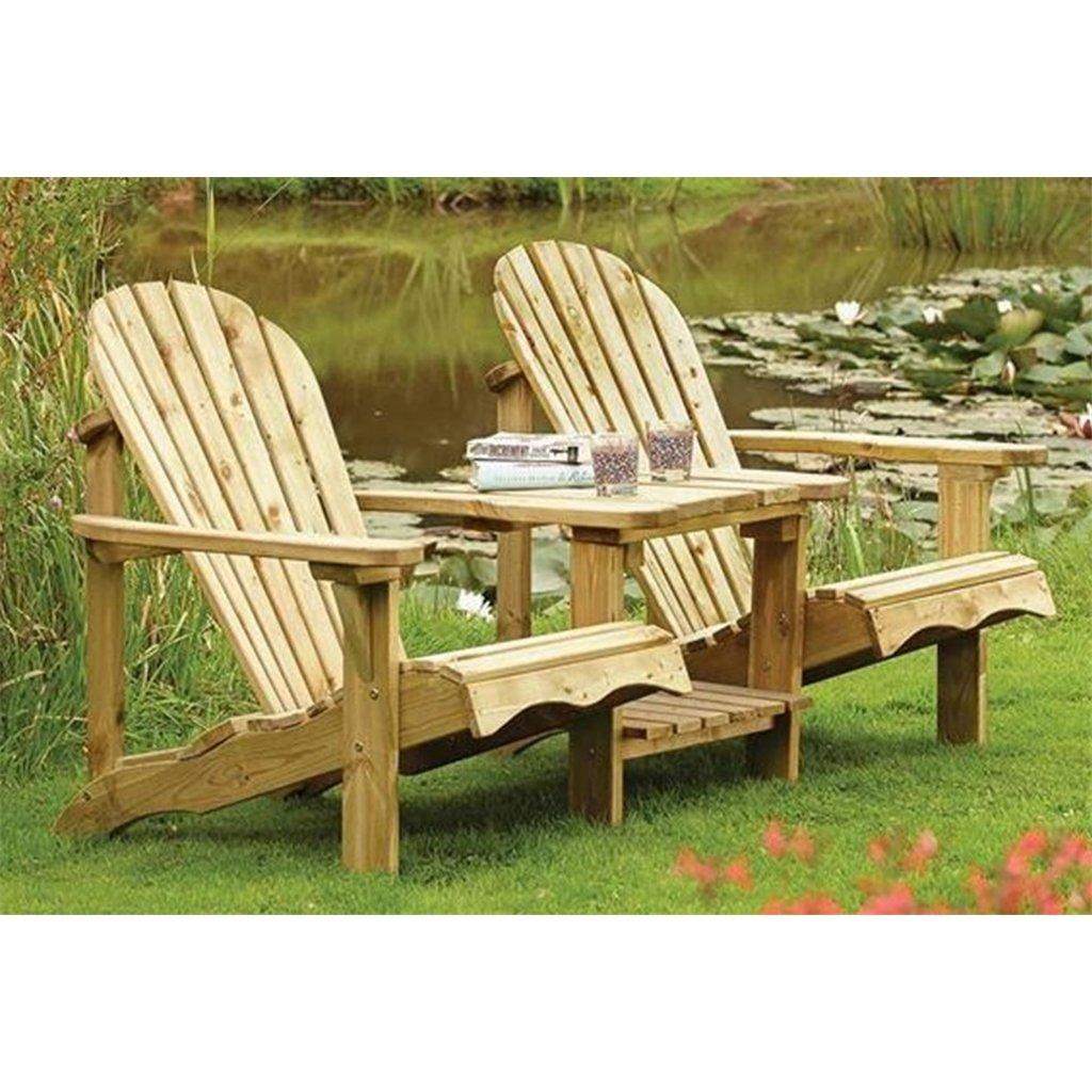 CHARLES BENTLEY FSC Certified Wooden, Companion Seat, Shelf For Books And Drinks, Garden Seats, Outdoor Furniture, Parasol Hole, Lightweight, Seating For Two People, Oil Coated Colour (168x85x71cm)
