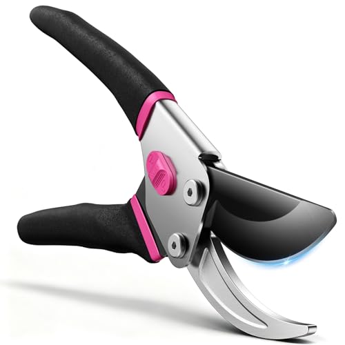 JiveSnip Professional Ratchet Anvil Pruning Shear Ratcheting Mechanism, Reinforced Design Handle Professional Bypass Garden Secateurs for Plants, Hedges, and Flowers