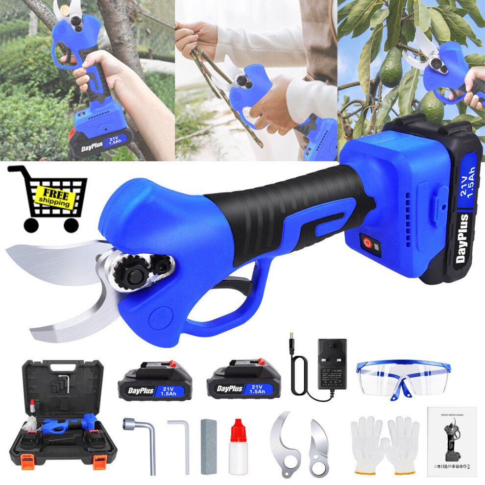 Cordless Garden Secateurs Scissors 21V Electric Pruning Shears Professional Garden Cut Tool 28mm Cutting Diameter with 2 Pack Battery Carry Case