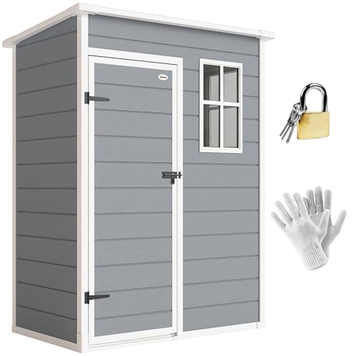 Outsunny 5' x 3' Plastic Garden Shed with Floor, Outdoor Storage Shed with Lockable Door, Window and Vent for Garden, Patio, Grey