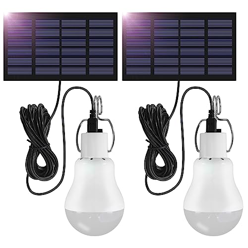 2 Pack Solar Powered Led Shed Light Bulb, TechKen Portable Lantern Lamp with Panel for Indoor Outdoor Kitchen Garden Patio Yard Hiking Camping Tent Fishing (UK1)