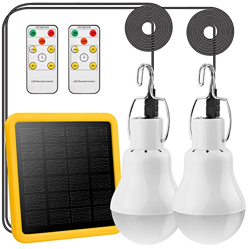2 Pack Solar Powered Led Shed Light Bulb, TechKen Portable Lantern Lamp with Panel for Indoor Outdoor Kitchen Garden Patio Yard Hiking Camping Tent Fishing (UK4)