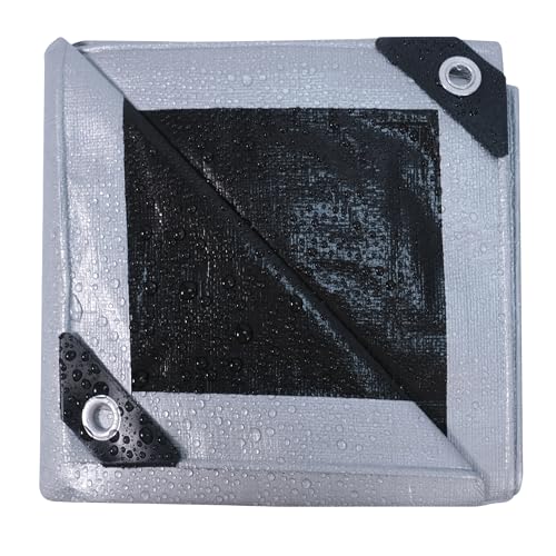 Covall Tarpaulin waterproof Heavy Duty Tarp Groundsheet 4x4m Sheet Cover with eyelets 140g/m² Silver/Black Multipurpose for roof pool cars truck Rv champing tent building garden pet shed Tarp