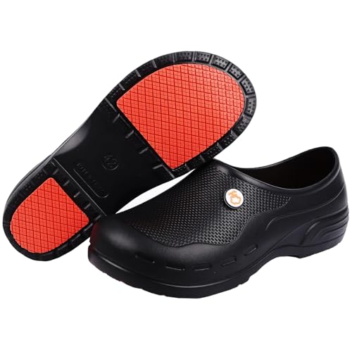 VAVSYL Chef Shoes for Men Women-Non Slip Kitchen Shoes for Chef Men-Nursing/Garden/Work Shoes for Men Women-Slip Resistant/Waterproof/Oil-Resitant Mens Clogs UK9 Black