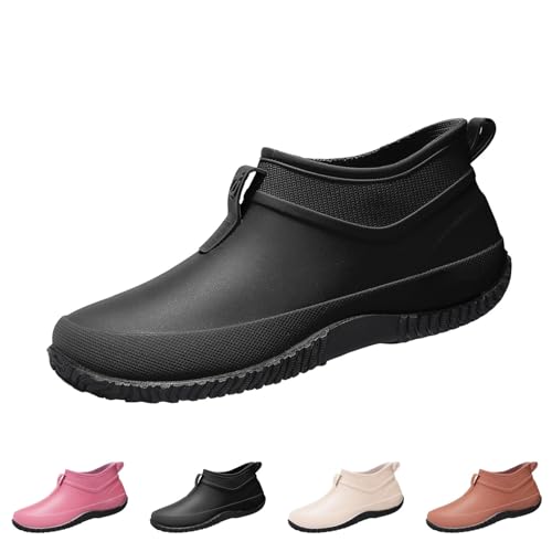 UK 6 Garden Shoes for Women Waterproof Loafers Slip-On Womens Rubber Rain Shoes Gardening Clogs Ankle Rain Boots Black