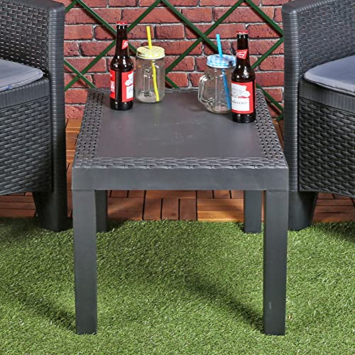 Rattan Look Plastic Garden Coffee Side Snack Table Outdoor Patio Deck Furniture (Anthracite)