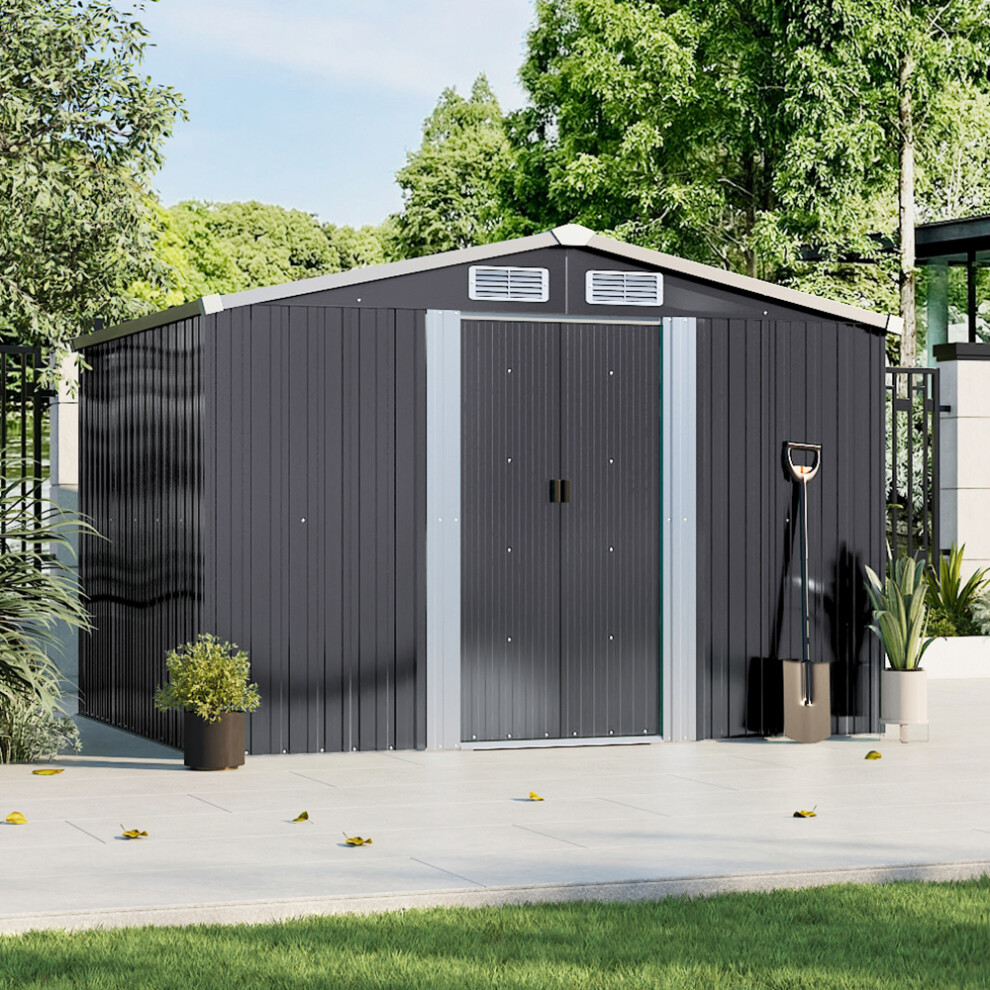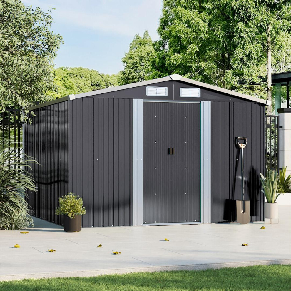 Garden Sanctuary 10.2x8.4ft Apex Roof Metal Garden Shed w Sliding door& Vents, Anthra