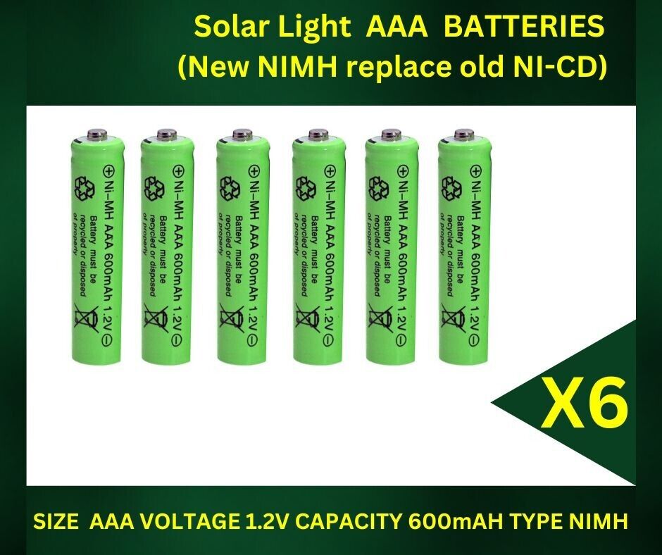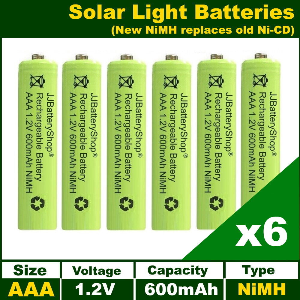 6 x AAA 1.2V 600mAh NiMH Rechargeable Batteries for Garden Solar Lights UK