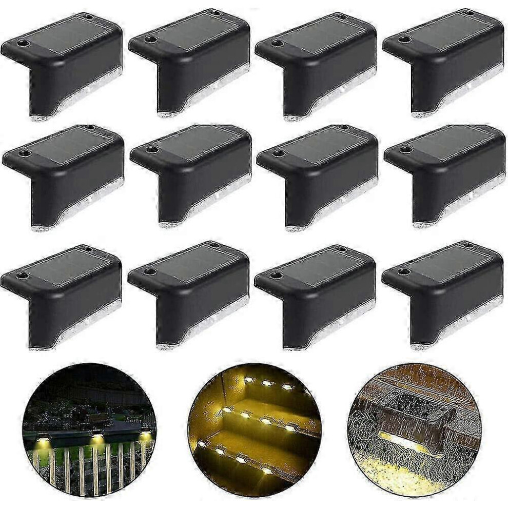 Waterproof Solar Fence Light, Solar Deck Light, Stair Light, Ip65 Led Solar Garden Lights For Patio Stair Fences (warm Light-black, 12 Pcs)