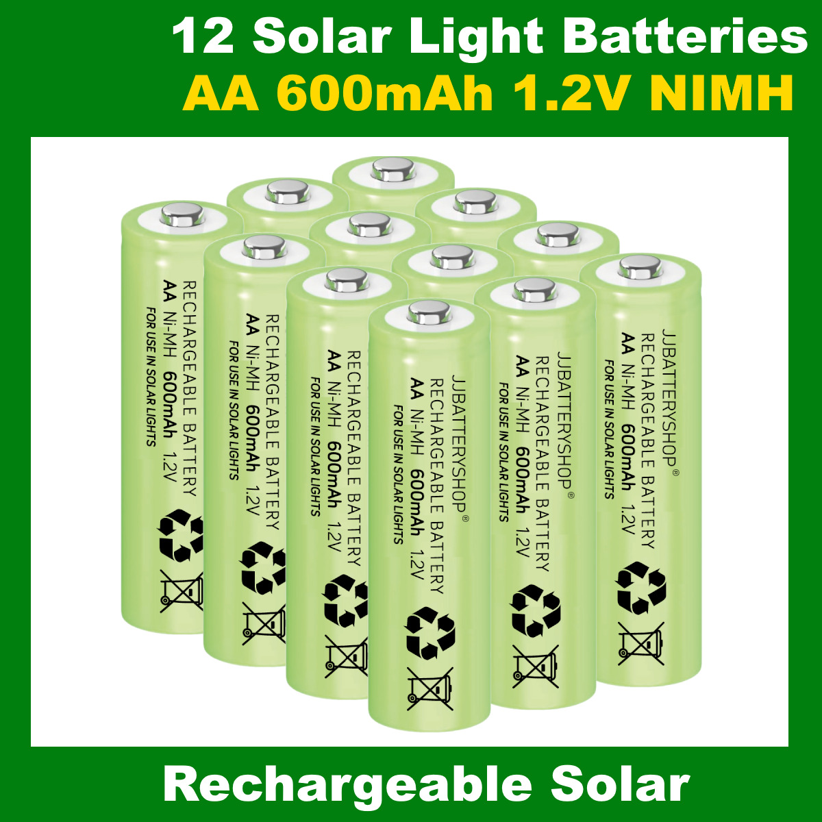 12 x AA 1.2V 600mAh NiMH Rechargeable Batteries for Garden Solar Lights UK