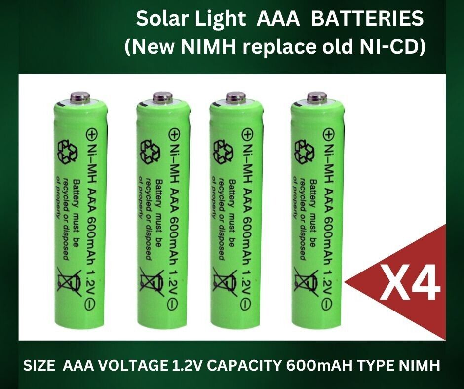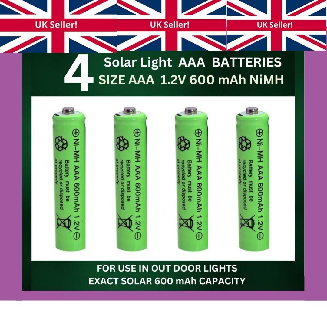 4 x AAA Solar Light Batteries 1.2V 600mAh NiMH for Outdoor Garden Lights UK