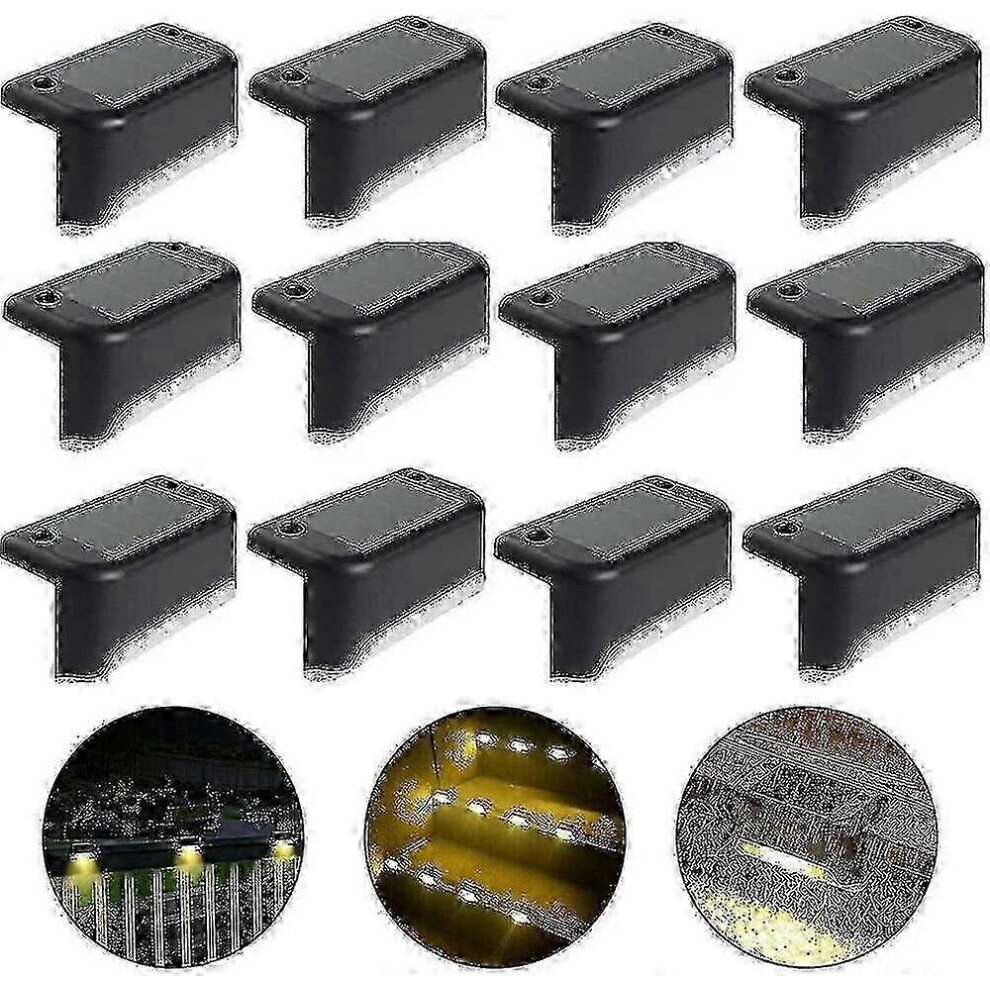 IP65 Waterproof Solar Fence Lights, Patio Lights, Stair Lights - LED Solar Garden Lights for Patio Stair Fences - Warm Light (Black, 12pcs)