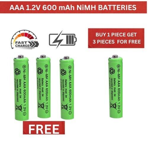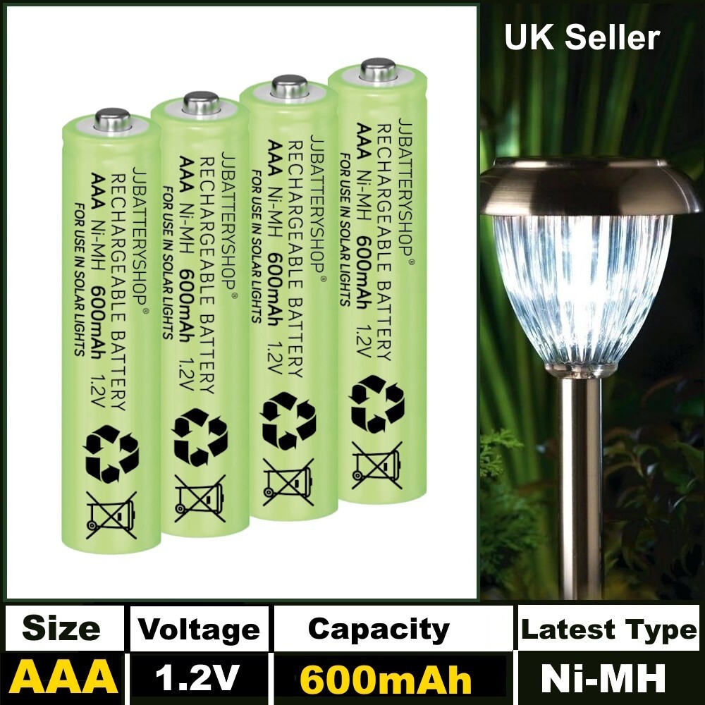 4 x AAA 1.2V 600mAh NiMH Fast Rechargeable Batteries for Garden Solar Lights UK