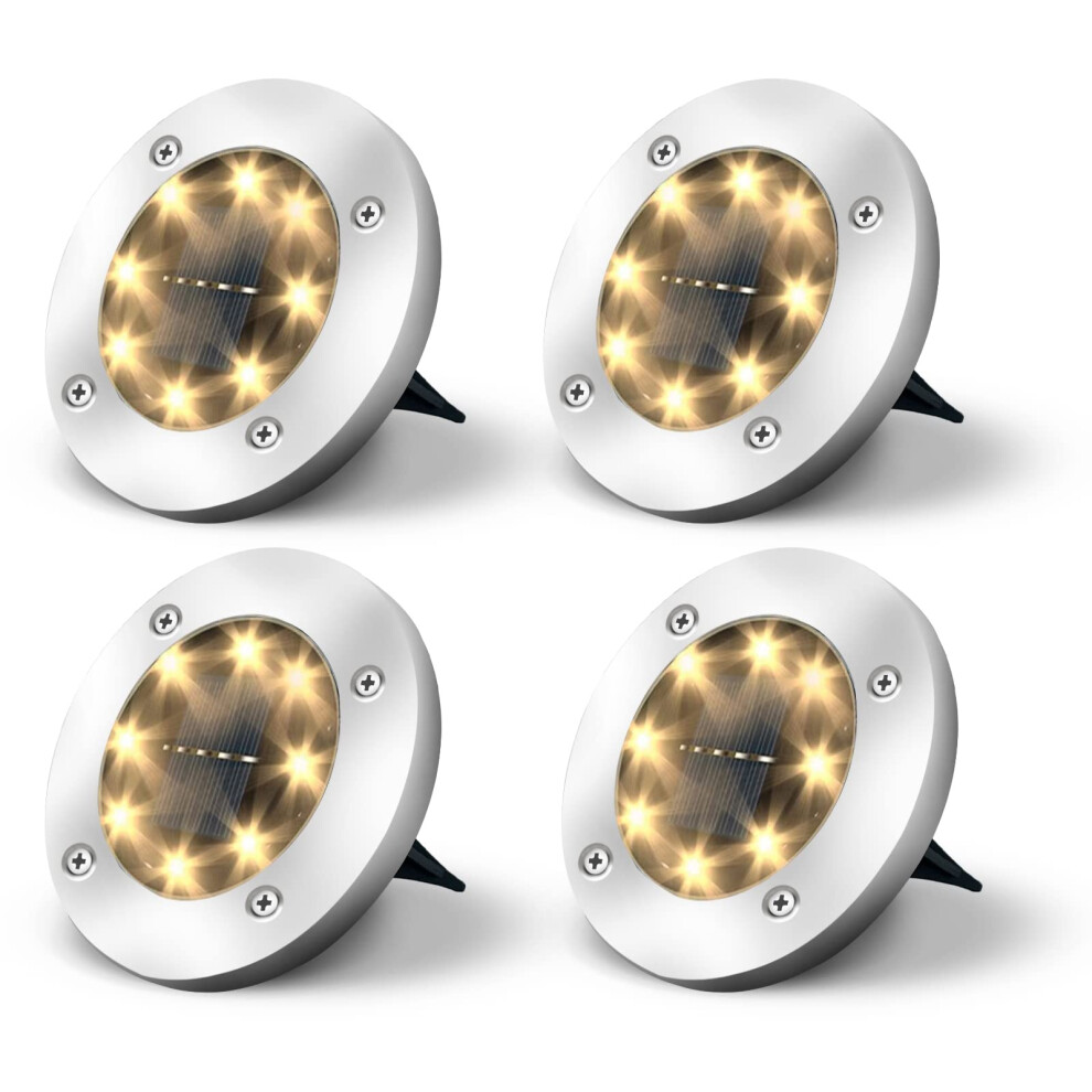 Solar Outdoor Garden Ground Lights, 8 LED Waterproof Patio Disk Lights, In-Ground Landscape Lighting, Floor Path Lights for Walkway, Lawn, Steps Decks, Pathway Yard Stairs Fences, Warm White (8 Pack)