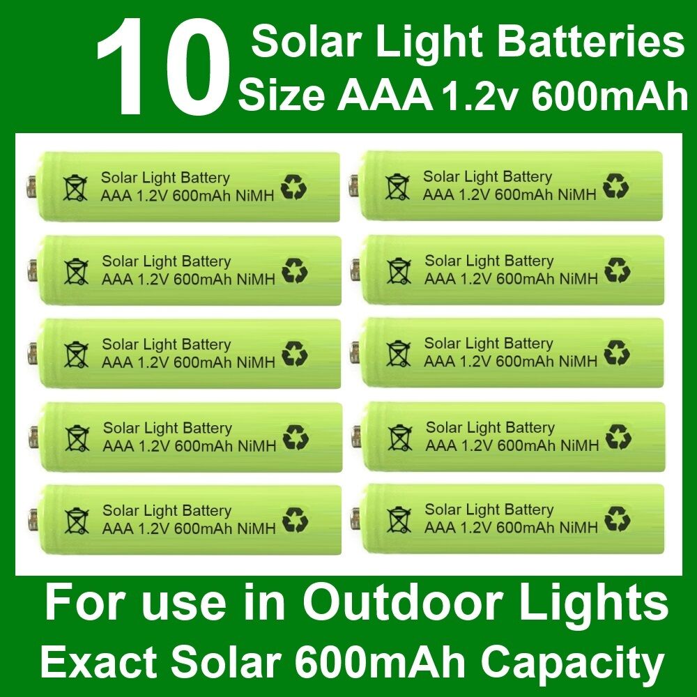 10 x AAA 1.2V 600mAh NiMH Rechargeable Batteries for Garden Solar Lights UK