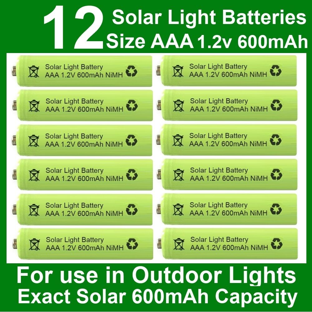 12 x AAA Solar Light Batteries 1.2V 600mAh NiMH for Outdoor Garden Lights UK