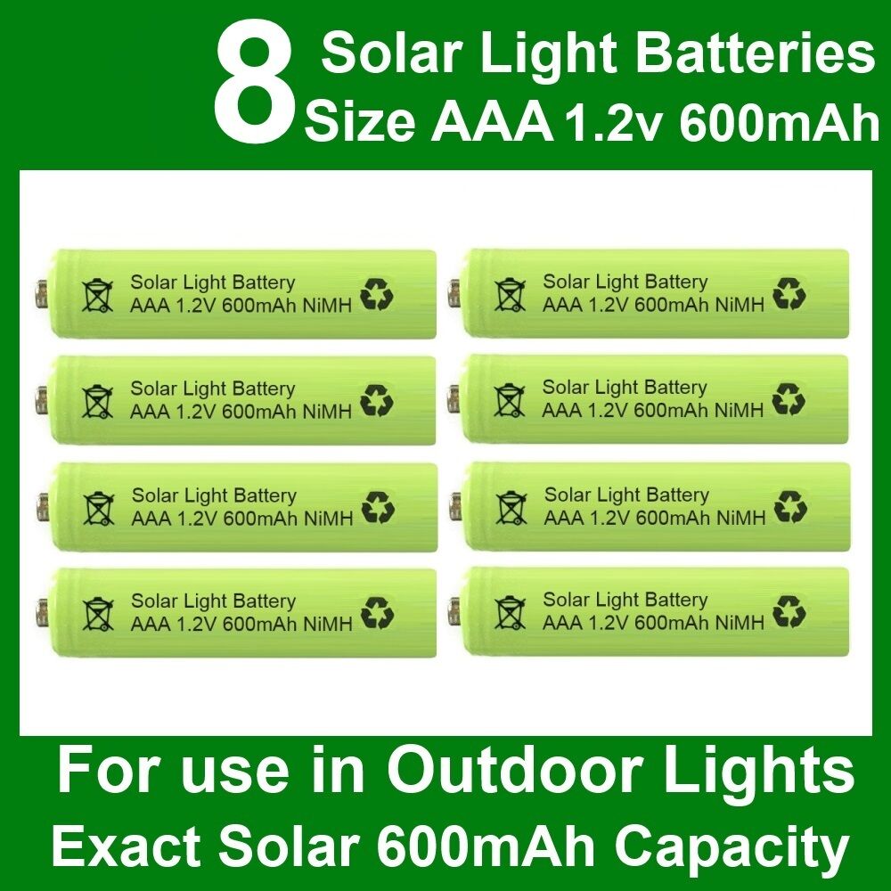 8 x AAA 1.2V 600mAh NiMH Rechargeable Batteries for Garden Solar Lights
