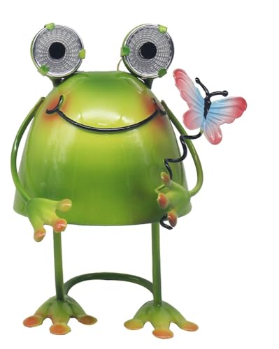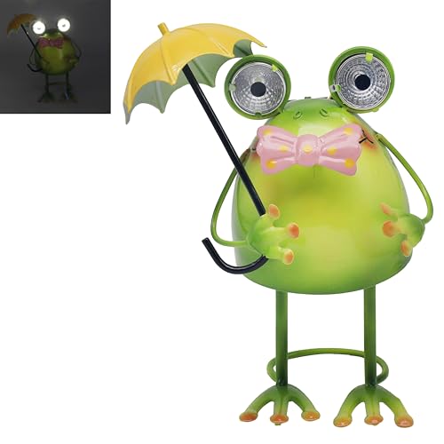 FIYSON Solar frog light, frog shape floor lamp, garden figure all weather apply, decorative lawn lights for outdoor use, frog garden decoration statue, unique resin stake lights (2)