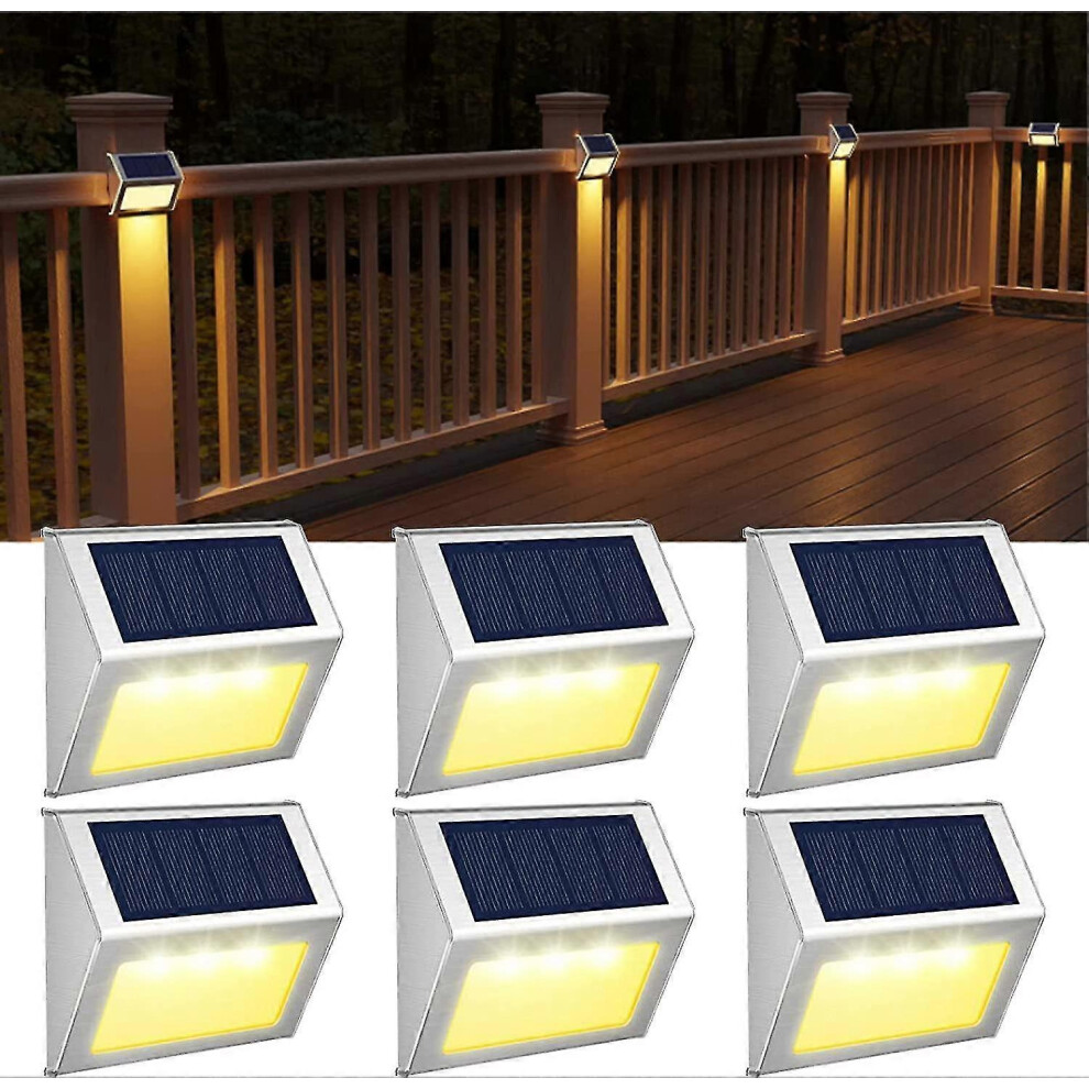 Solar Deck Lights Outdoor Decoration, Warm White Mode for Gardens Steps Patios Garden Fences, Solar-Powered LED Wall Lamp with High Efficiency Solar