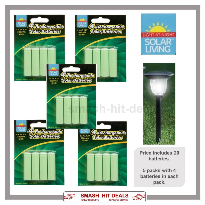 20 X AA 300mAh 1.2v NiMH Rechargeable Solar Light Batteries For Garden Lights