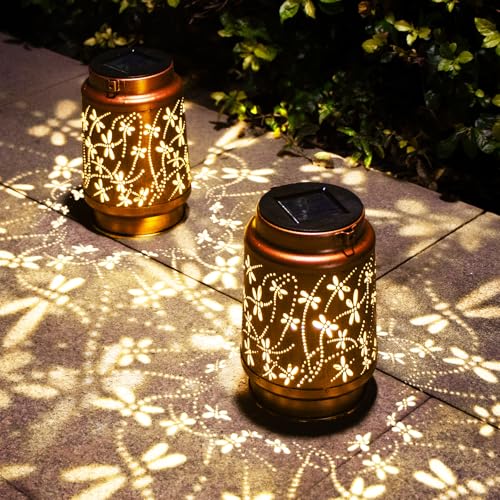 Buhdjfnke Solar Lantern Outdoor Waterproof 2 Pack, Hanging Outdoor Lights, Decorative Garden Lanterns