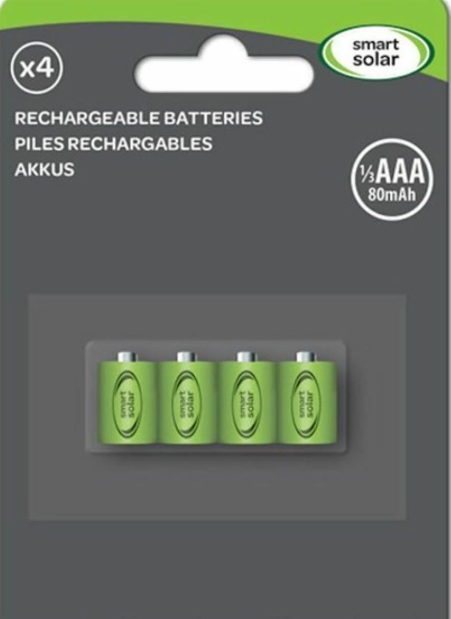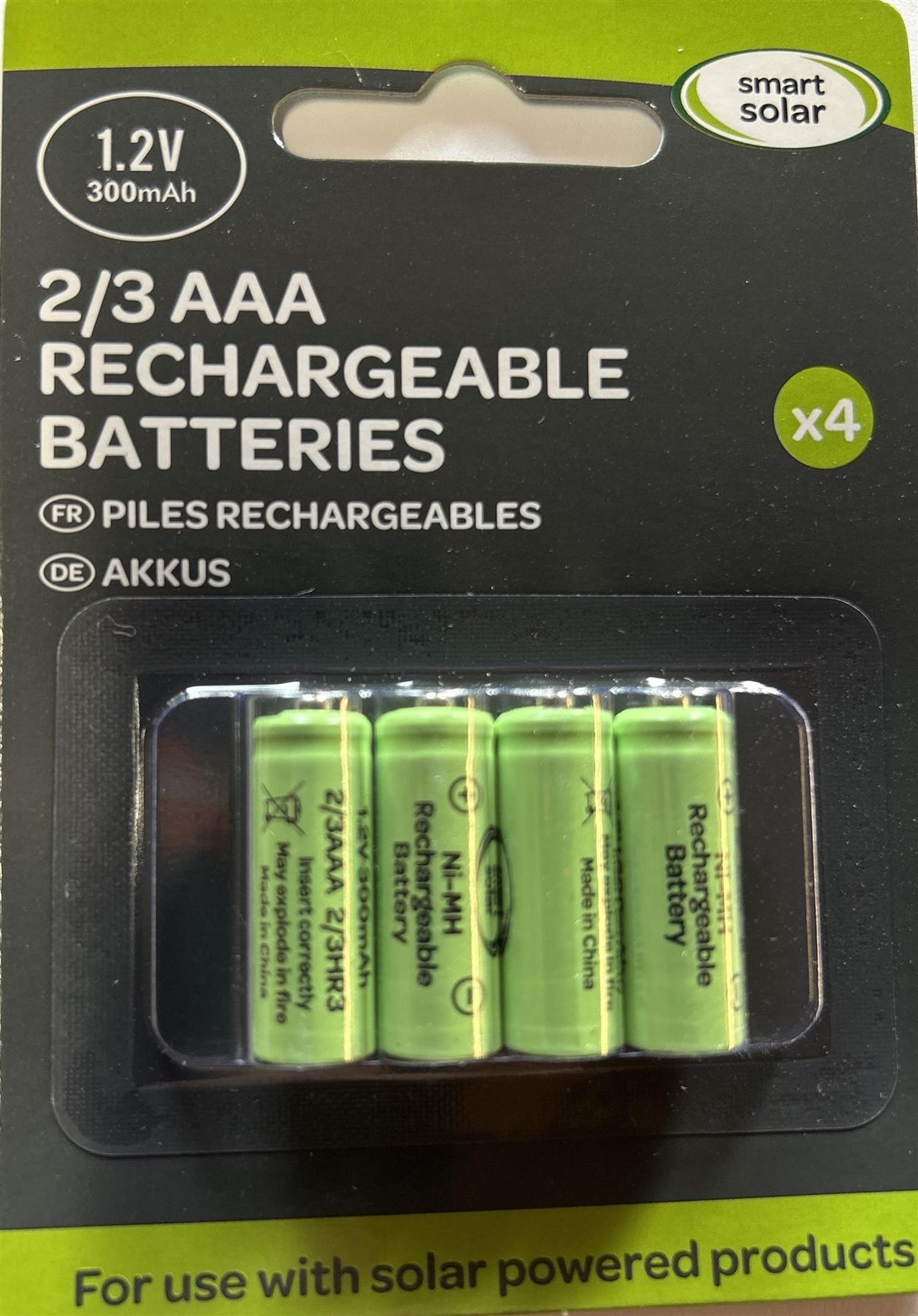4x 1/3AAA SMART SOLAR RECHARGEBLE BATTERIES FOR SOLAR GARDEN LIGHTS 16.7 x 10.2