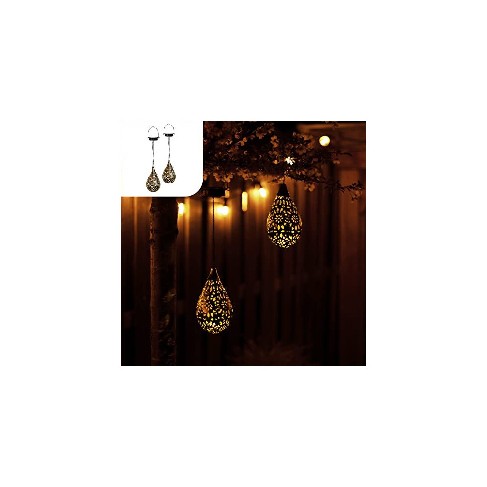 Gadgy Hanging Solar Lights | Set of 2 | Solar Powered Lanterns | LED Outdoor Ornaments for Garden, Patio or Pergola | Metal Decoration | Waterpro