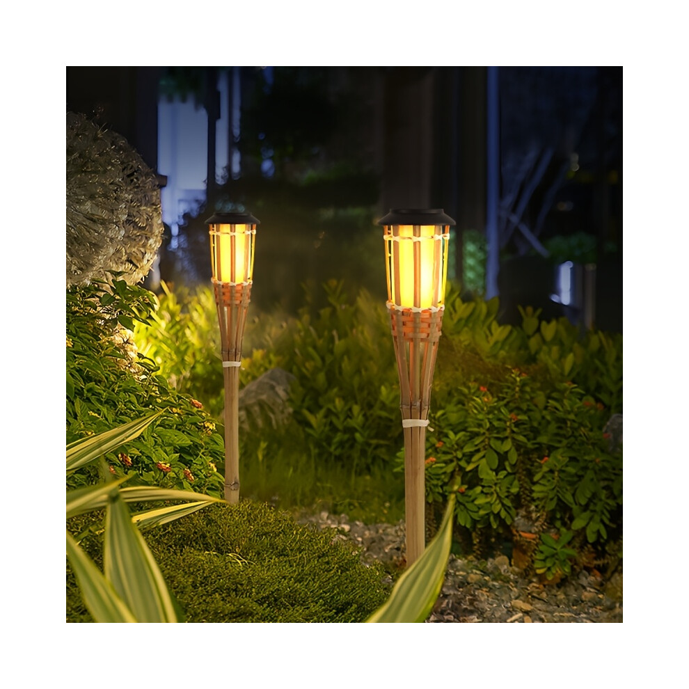 (12LED flame type, 2 Packs) Solar-Powered Bamboo Lanterns, Bamboo Art Torches, LED Outdoor Lighting Decorative Landscape Lights, Solar Garden Lights,