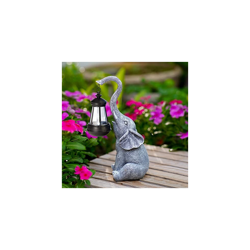 Elephant Ornaments with Solar Lanterns - 27.5cm Elephant Outdoor Statues Figurines with Solar Powered LED Lights for Garden/Yard Decor,Good Luck