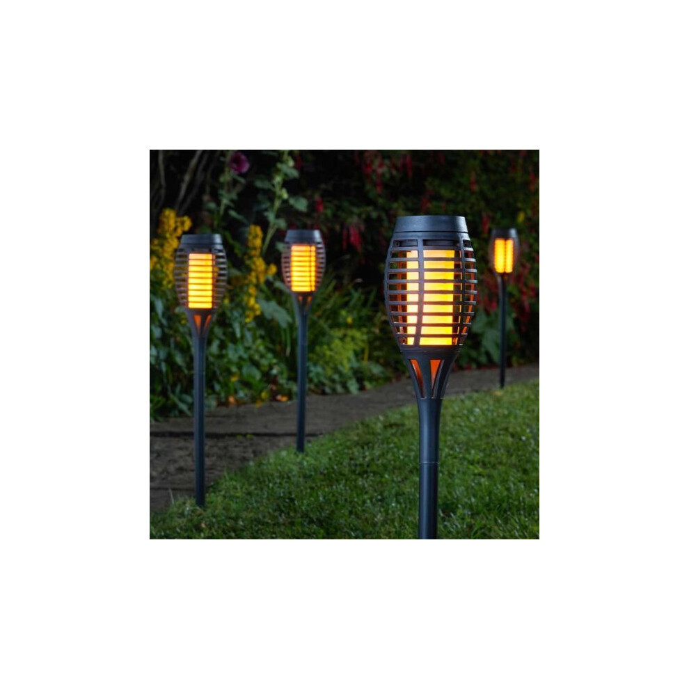 5 x Solar Powered Flame Effect BLACK Flaming Party Torch Garden Lanterns