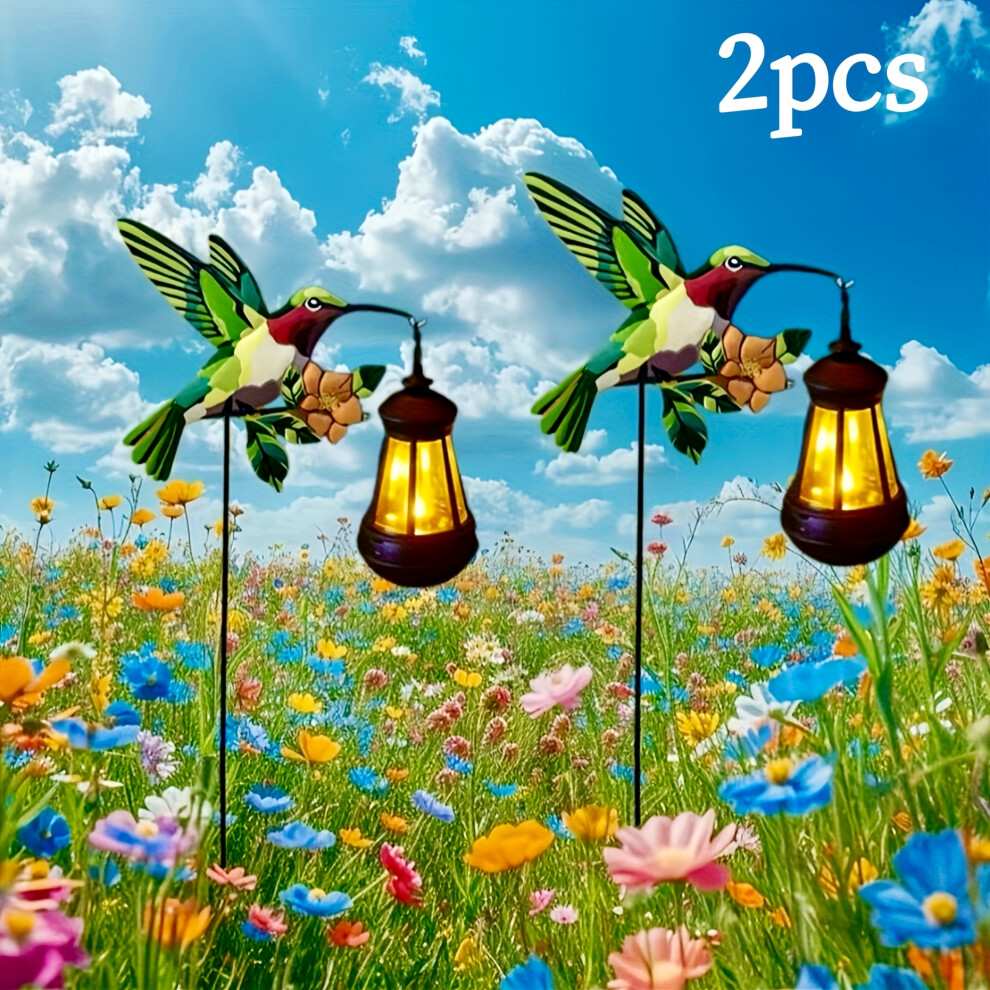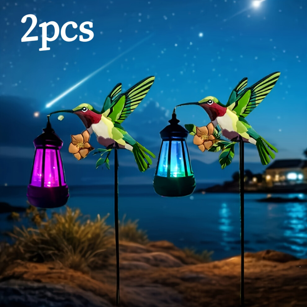 (2pcs Colorful Palace Lanterns) colorful solar powered hummingbird lanterns, beautiful solar garden decoration lights, hanging green hummingbird decor